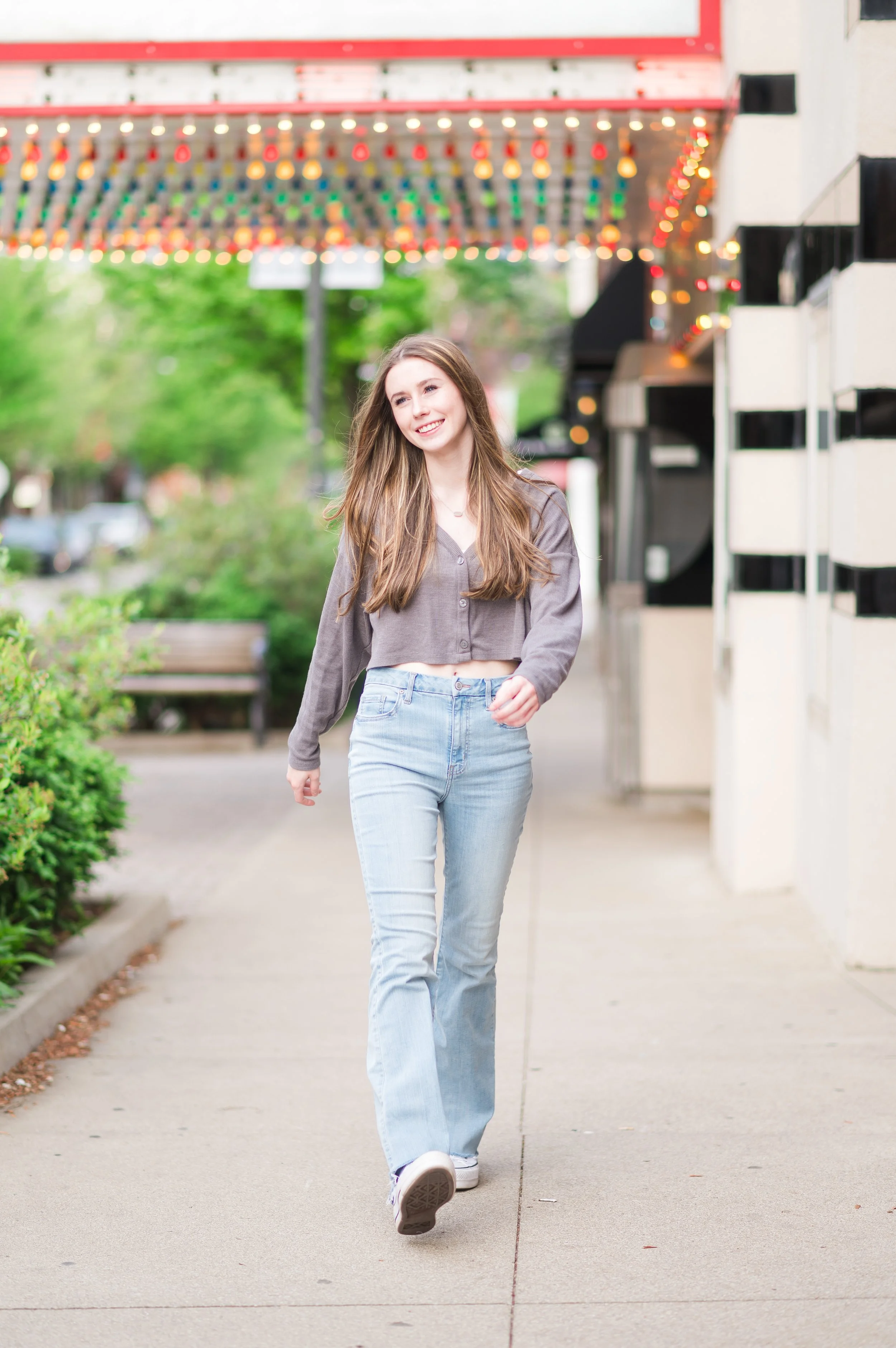 This area has a lot of foot traffic, but if you’re comfortable with a lively setting, it’s such a fun option for your senior pictures.