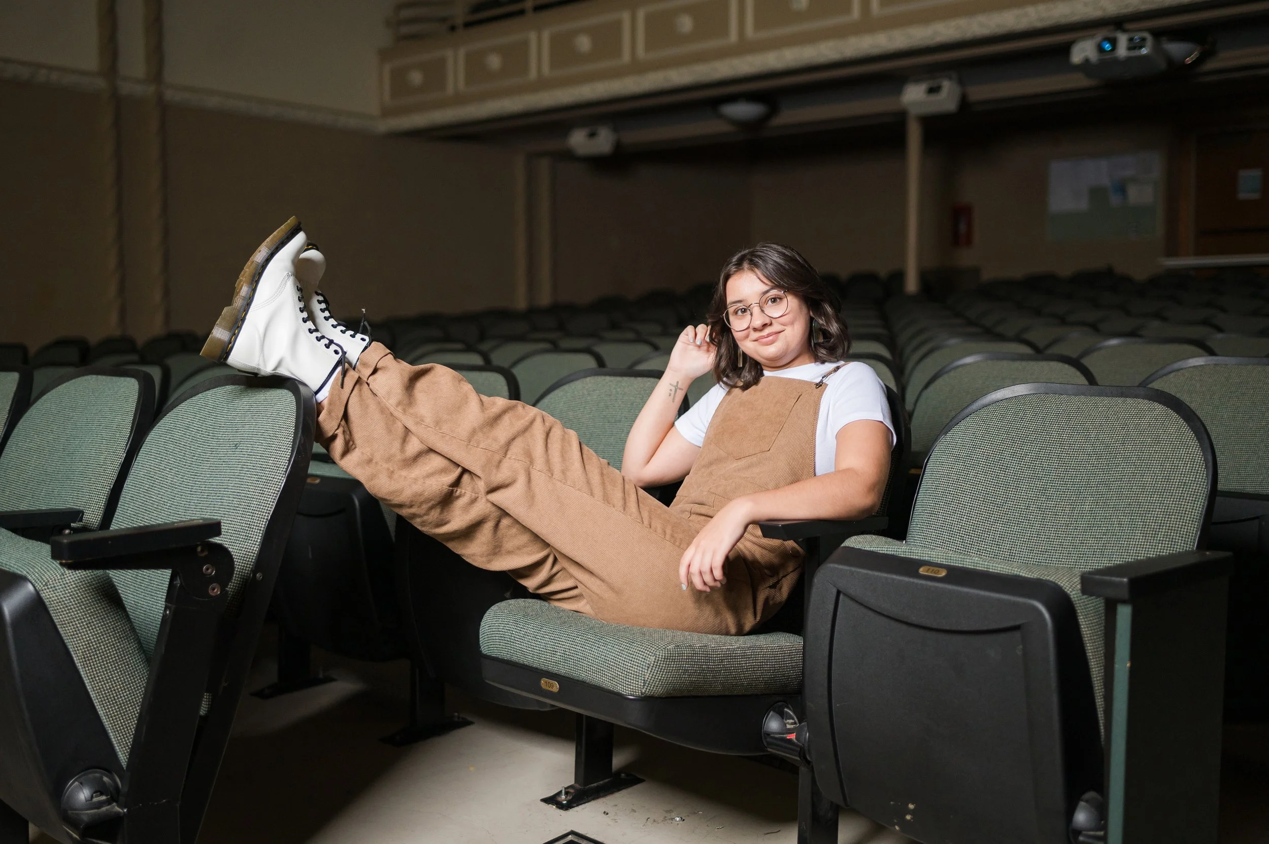 If you love an urban feel, Downtown Bloomington is full of hidden gems for senior photos. Think unique storefronts, ivy-covered walls, alleyways with character, and even the retro charm of the Castle Theatre or History Museum.