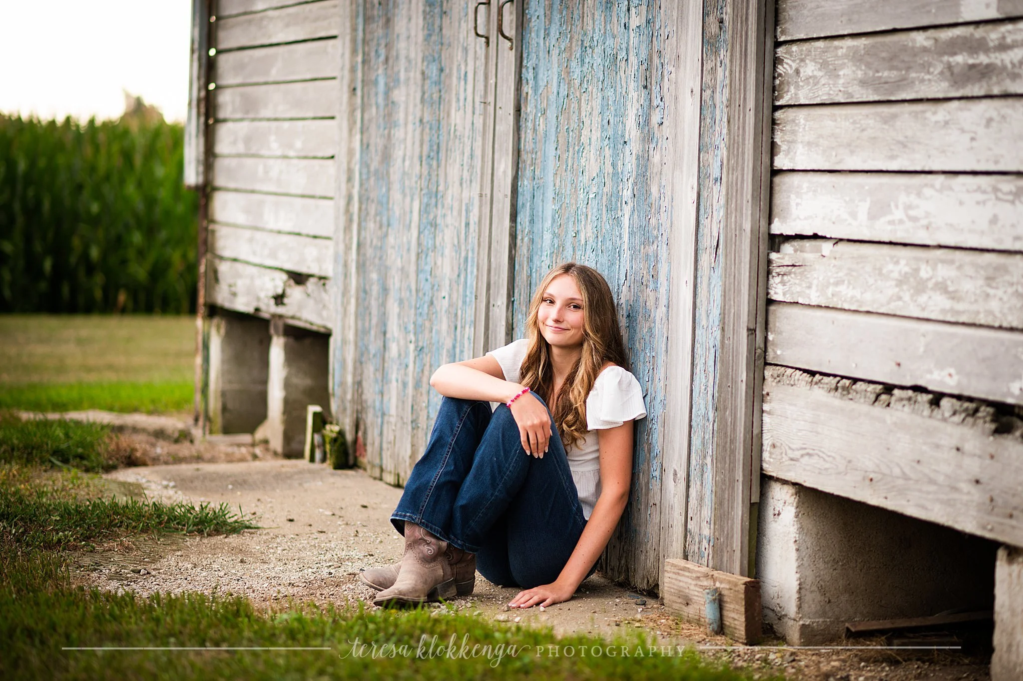 She also wanted to use a piece of farmland west of Normal that has an old barn with a rustic chipping blue door, the perfect touch for Faith!